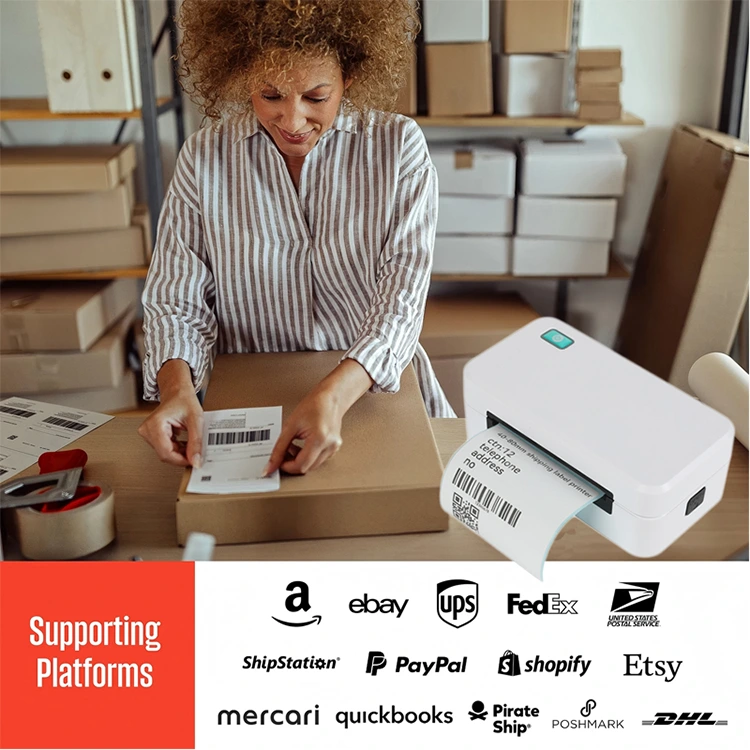 Imprimanta are o tavă de hârtie încorporată pentru depozitarea comodă a hârtiei, iar capacul superior poate fi deschis prin apăsarea unui buton lateral pentru o operare ușoară. Imprimă rapid și clar, fără pete de cerneală, ceea ce îl face ideal pentru imprimarea etichetelor de expediere, codurilor de bare și a altor etichete în locuri precum magazinele de ceai cu bule și depozitele.