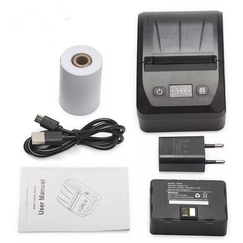 Are o interfață dublă Bluetooth + USB standard, compatibilă cu comenzile Android, iOS, Windows și ESC/POS. Accesoriile complete includ: cablu de încărcare USB, adaptor de alimentare, rolă de hârtie și manual de utilizare.