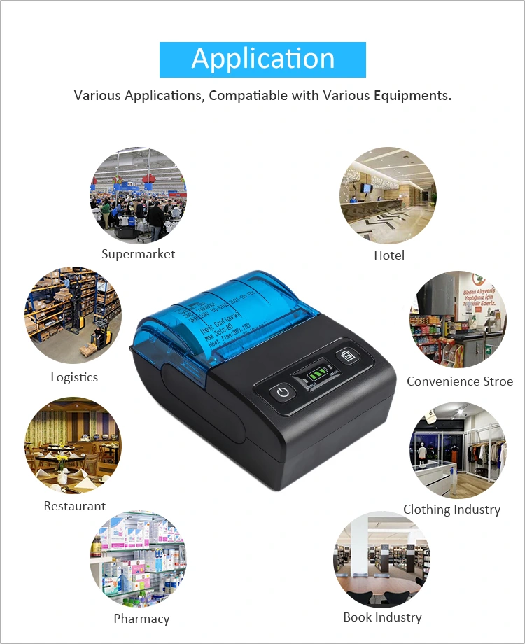 Mini-imprimantele termice portabile au o cerere uriașă pe piață, în special în retail, catering, livrare expres și alte industrii de servicii. De exemplu, acest tip de imprimantă oferă comercianților și furnizorilor de servicii o soluție convenabilă și eficientă de plată. Fără a fi nevoie de conexiuni complexe prin cablu, tehnologia Bluetooth permite asocierea rapidă și ușoară cu smartphone-uri, tablete sau dispozitive mobile, făcând procesul de plată mai rapid și mai convenabil. Cu un design portabil și ușor, este potrivit pentru scenarii mobile de puncte de vânzare sau de service.